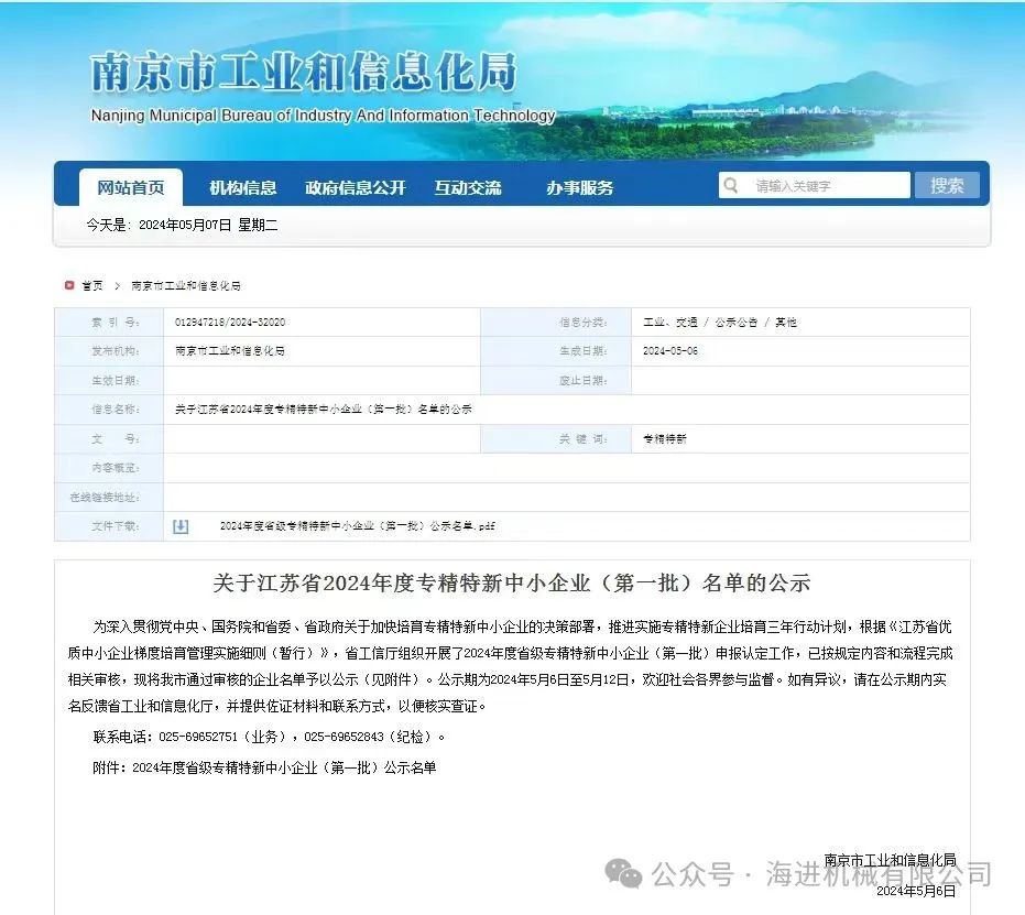 • 海進(jìn)機(jī)械榮獲“2024年度省級專精特新中小企業(yè)”認(rèn)證